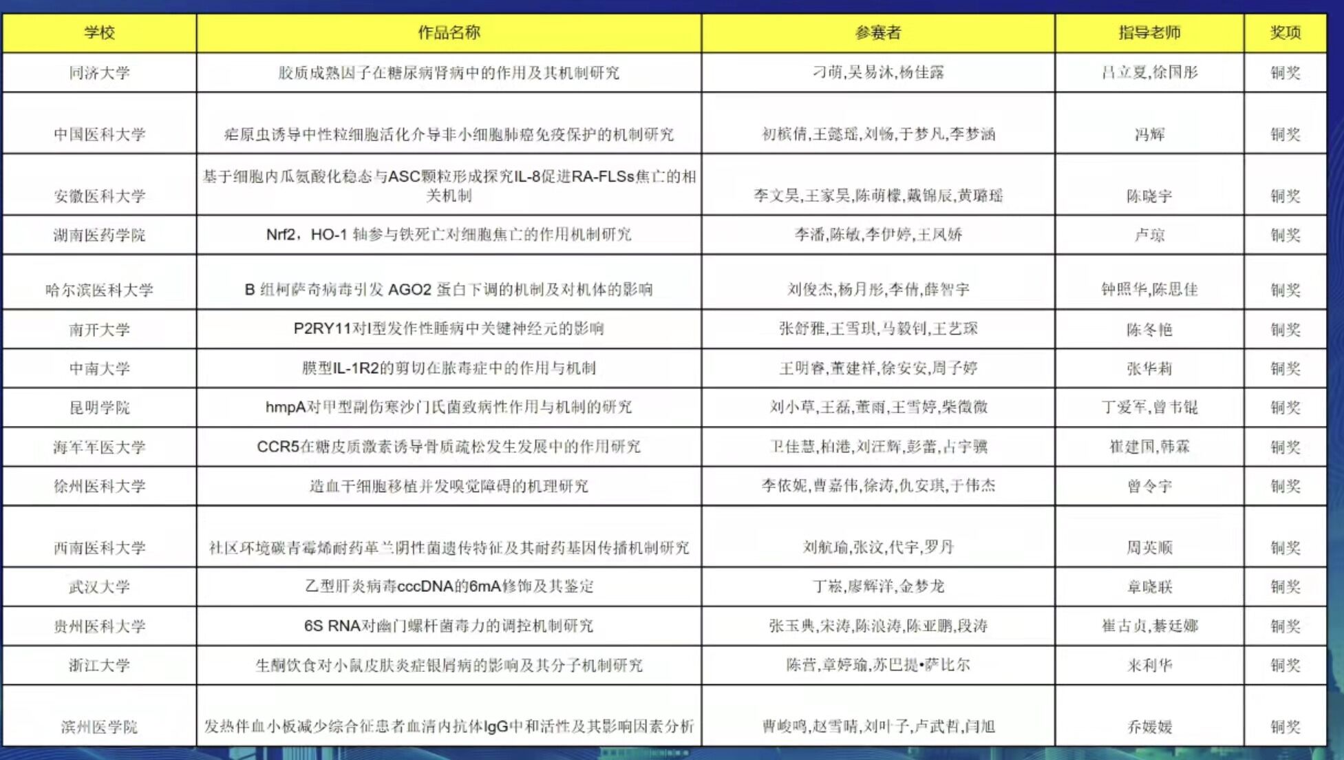 全国大学生基础医学创新研究暨实验设计论坛旨在全面贯彻全国教育大会精神,深入落实国家关于加快医学教育创新发展意见要求,聚焦新医科背景下尚德精术卓越医学人才的培养目标,充分展示当代大学生勇于创新、科创报国的时代风貌,搭建大学生多学科整合、全方位合作、稳准狠突破、具有转化潜力的高水平大学生科研平台。本次论坛从1003项作品中遴选了306项入围总决赛参加线上答辩,内容涉及消化、泌尿、生殖、内分泌、神经系统、精神疾病,医学免疫学、医学病原生物学、肿瘤学、综合与交叉学科等多个学科领域。
