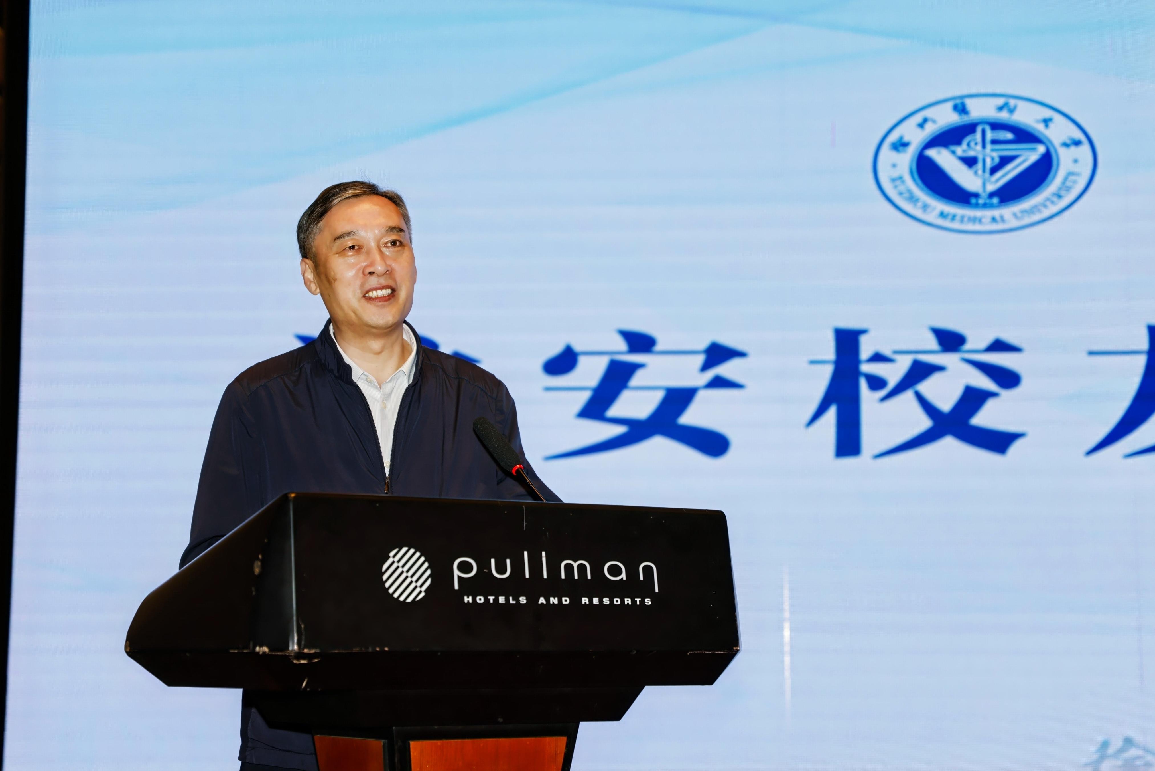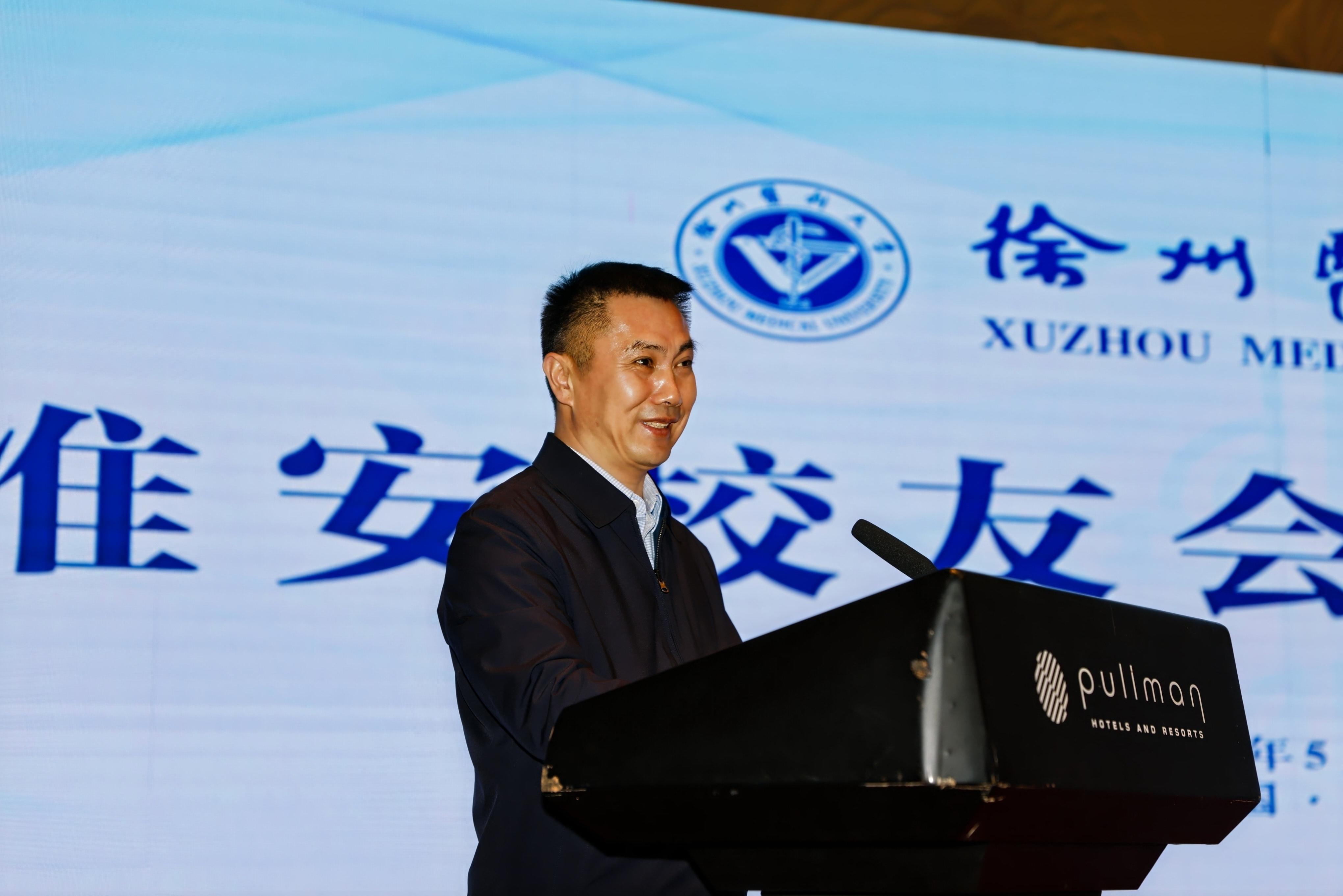 祝木伟在讲话中,回顾了学校办学的历史,介绍了近年来学校取得的成绩,代表学校向各位校友赤诚奉献和鼎力相助表示感谢。他指出,校友是大学人才培养的最直接体现,是社会声誉和影响力的最有力支撑。他表示,在学校第二次党代会后,学校明确了建设“特色鲜明的高水平医科大学”目标,提出了更高水平打造“一中心一高地一校园”,以及建设有情怀大美徐医的目标任务,部署了未来五年“九高一化”提升行动。他强调,淮安是我校重要的生源基地和就业基地。淮安校友会的成立给在淮安的校友搭建了一个与学校联系的平台,一个校友相互联络、交流与帮助的平台。最后他希望淮安校友会大力加强自身建设,积极构建与母校发展的共同体;希望淮安校友情系母校,主动当好宣传母校成就、助推母校发展的活的名片,“常系母校动态”“常回母校看看”“常叙团结情谊”;希望淮安校友永葆医学初心,努力在维护人民健康的道路上奋勇担当、积极作为,为学校“建设特色鲜明的高水平医科大学”的目标建言献策、贡献力量。