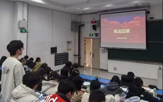 党委宣传部组织全体教职工开展“宪法宣传周”专题学习,通过发放书籍、发布微刊、投放视频等方式,线上线下营造法治宣传氛围。马克思主义学院以《思想道德与法治》课程为核心载体,组织开课班级开展庄重的宪法晨读活动,并针对大一本科生打造“学宪守宪护权益,法治实践伴青春”两日沉浸式实践,通过专题授课、宪法广场现场研学与集体宣誓,让法治信仰扎根心底。学生工作部举行“学宪法担使命 青春筑梦启新程”主题升国旗仪式暨国旗下的思政课,辅导员代表与学生代表围绕宪法精神作国旗下讲话,传递青年法治心声。