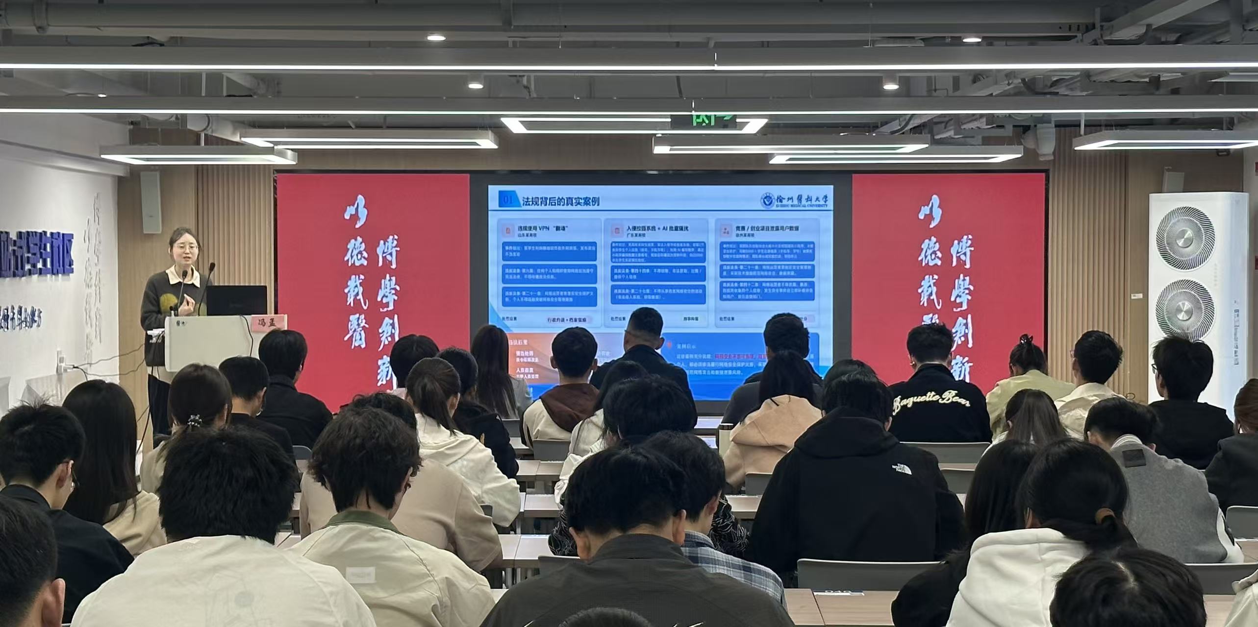 4月15日是我国第十一个全民国家安全教育日,为切实筑牢校园网络安全防线,提升师生网络安全素养与风险防范能力,4月14日下午,由“护航360”辅导员安全教育工作室牵头主办、医学信息与工程学院承办的“维护网络安全,共筑青春防线”大学生网络安全专题培训,在一站式学生社区举办。作为我校辅导员工作品牌的重要组成,“护航360”工作室持续聚焦学校安全育人实践,此次培训正是深化网络安全教育、助力构建平安校园的重要举措。本次培训特邀信息化处网络科冯孟老师担任主讲,药学院、口腔医学院及医学信息与工程学院的相关领导、老师与学生代表共同参与。